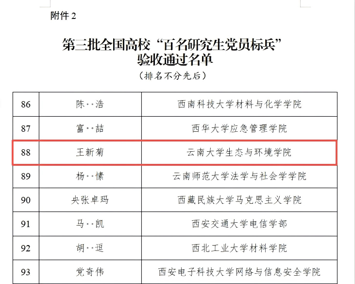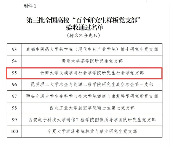 近日,教育部办公厅公布第三批全国高校“百个研究生样板党支部”和“百名研究生党员标兵”创建培育工作验收通过名单。经过2年的创建培育期,我校研究生党支部民族学与社会学学院研究生社会学党支部、研究生党员生态与环境学院博士生王新菊顺利通过验收!